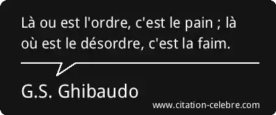 Là ou est l'ordre, c'est le pain ; là où est le désordre, c'est la faim.