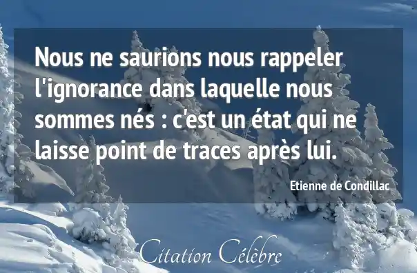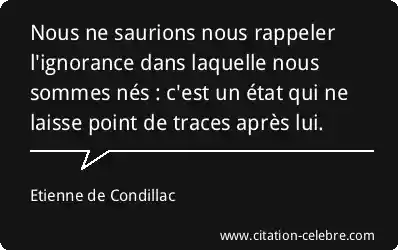 Nous ne saurions nous rappeler l'ignorance dans laquelle nous sommes nés : c'est un état qui ne laisse point de traces après lui.