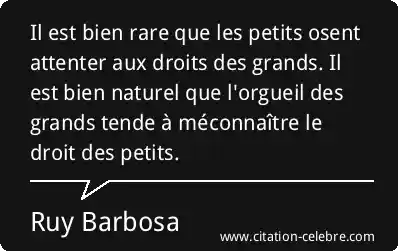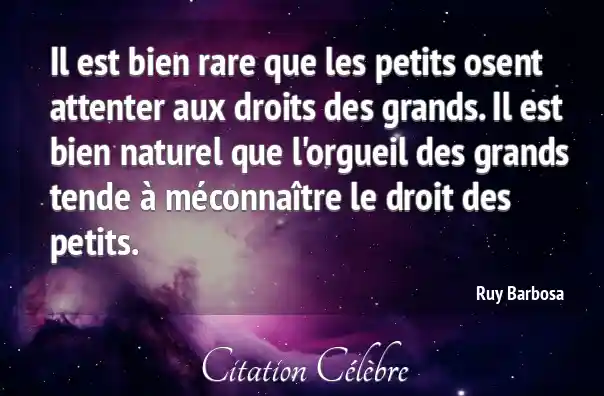 Il est bien rare que les petits osent attenter aux droits des grands. Il est bien naturel que l'orgueil des grands tende à méconnaître le droit des petits.