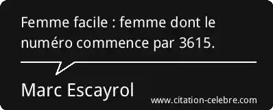 Citation Marc Escayrol femme : Femme facile : femme dont le numéro commence par 3615....