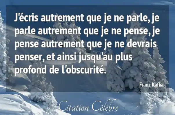 J'écris autrement que je ne parle, je parle autrement que je ne pense, je pense autrement que je ne devrais penser, et ainsi jusqu'au plus profond de l'obscurité.