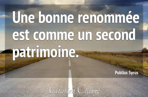 Une bonne renommée est comme un second patrimoine.