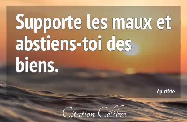Citation Epictète toi : Supporte les maux et abstiens-toi des biens....