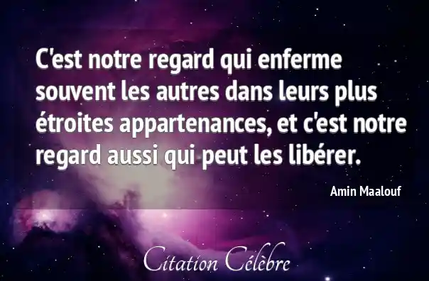 C'est notre regard qui enferme souvent les autres dans leurs plus étroites appartenances, et c'est notre regard aussi qui peut les libérer.
