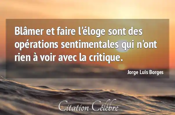 Blâmer et faire l'éloge sont des opérations sentimentales qui n'ont rien à voir avec la critique.
