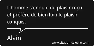 L'homme s'ennuie du plaisir reçu et préfère de bien loin le plaisir conquis.
