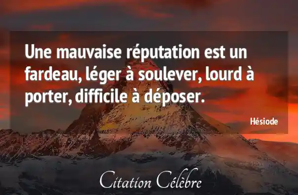 Une mauvaise réputation est un fardeau, léger à soulever, lourd à porter, difficile à déposer.