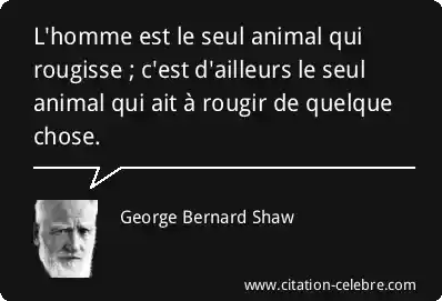Citation George Bernard Shaw homme : L'homme est le seul animal qui rougisse ; c'est d'ailleurs...