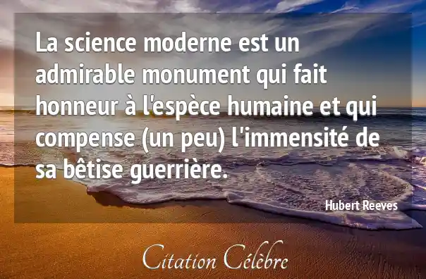 La science moderne est un admirable monument qui fait honneur à l'espèce humaine et qui compense (un peu) l'immensité de sa bêtise guerrière.