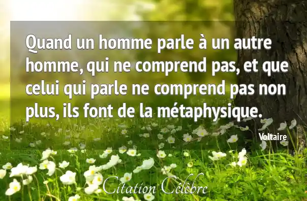 Quand un homme parle à un autre homme, qui ne comprend pas, et que celui qui parle ne comprend pas non plus, ils font de la métaphysique.
