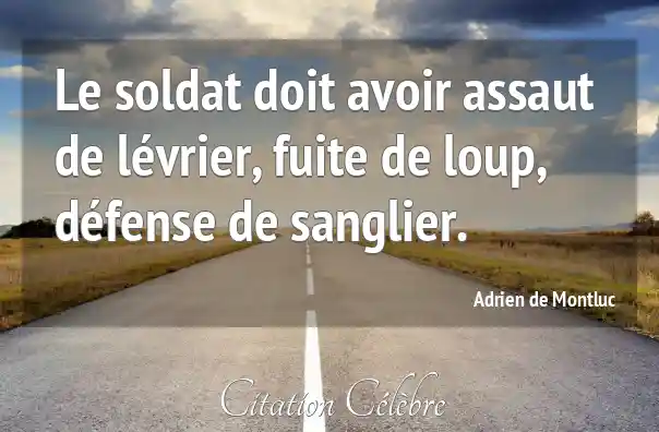 Le soldat doit avoir assaut de lévrier, fuite de loup, défense de sanglier.