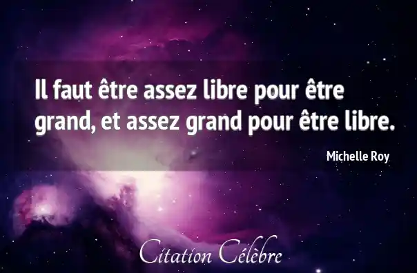 Il faut être assez libre pour être grand, et assez grand pour être libre.