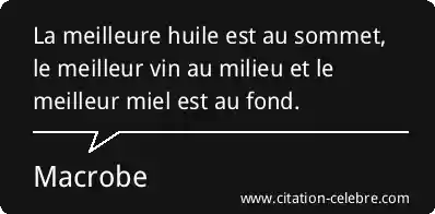 La meilleure huile est au sommet, le meilleur vin au milieu et le meilleur miel est au fond.
