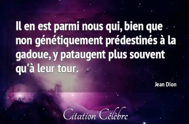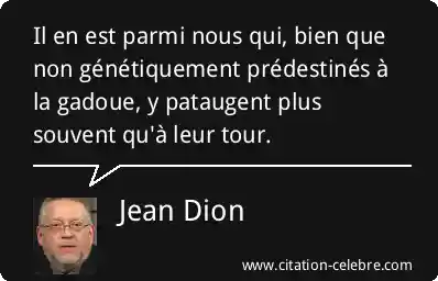 Citation Jean Dion bien : Il en est parmi nous qui, bien que non génétiquement...