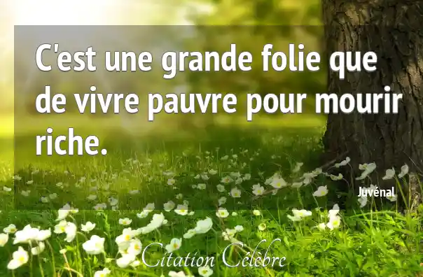 C'est une grande folie que de vivre pauvre pour mourir riche.