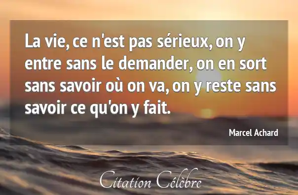 La vie, ce n'est pas sérieux, on y entre sans le demander, on en sort sans savoir où on va, on y reste sans savoir ce qu'on y fait.