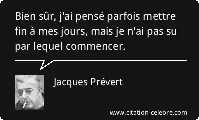 Bien sûr, j'ai pensé parfois mettre fin à mes jours, mais je n'ai pas su par lequel commencer.