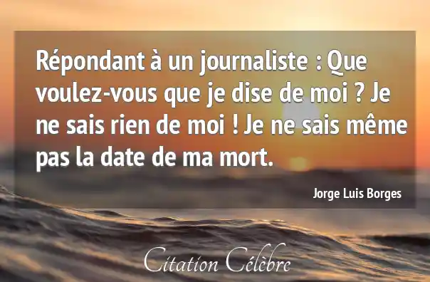 Répondant à un journaliste : Que voulez-vous que je dise de moi ? Je ne sais rien de moi ! Je ne sais même pas la date de ma mort.