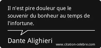 Il n'est pire douleur que le souvenir du bonheur au temps de l'infortune.