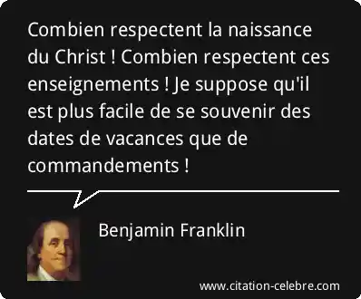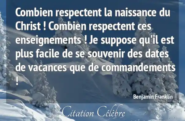 Combien respectent la naissance du Christ ! Combien respectent ces enseignements ! Je suppose qu'il est plus facile de se souvenir des dates de vacances que de commandements !