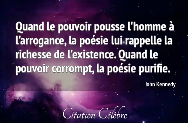 Quand le pouvoir pousse l'homme à l'arrogance, la poésie lui rappelle la richesse de l'existence. Quand le pouvoir corrompt, la poésie purifie.