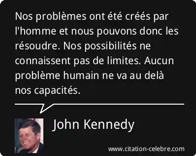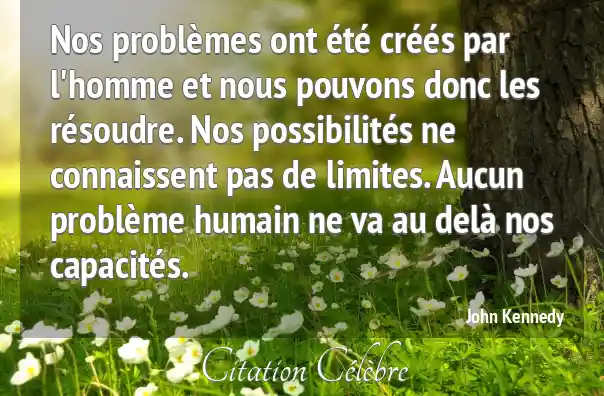 Nos problèmes ont été créés par l'homme et nous pouvons donc les résoudre. Nos possibilités ne connaissent pas de limites. Aucun problème humain ne va au delà nos capacités.