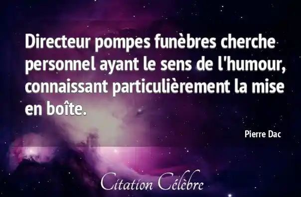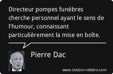 Directeur pompes funèbres cherche personnel ayant le sens de l'humour, connaissant particulièrement la mise en boîte.