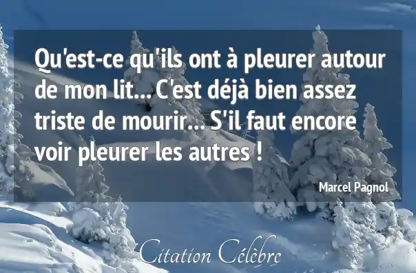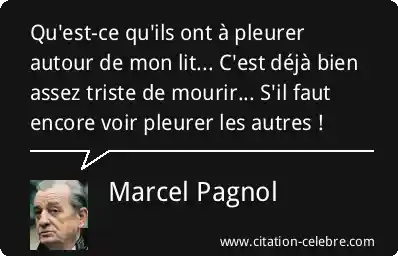 Qu'est-ce qu'ils ont à pleurer autour de mon lit... C'est déjà bien assez triste de mourir... S'il faut encore voir pleurer les autres !