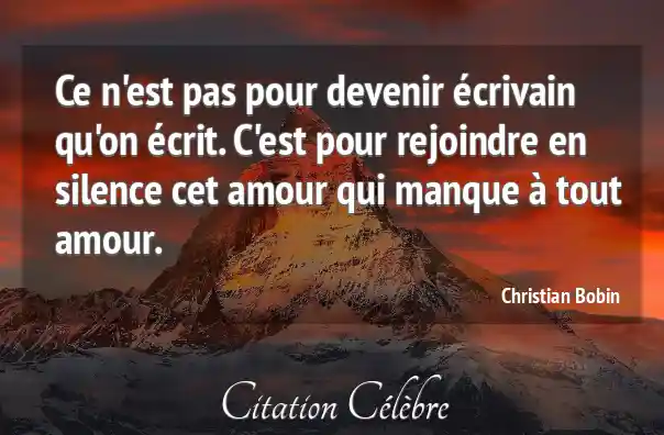 Ce n'est pas pour devenir écrivain qu'on écrit. C'est pour rejoindre en silence cet amour qui manque à tout amour.