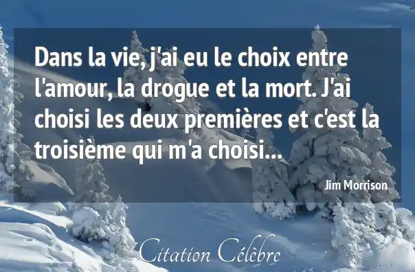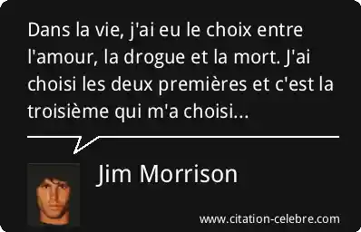 Dans la vie, j'ai eu le choix entre l'amour, la drogue et la mort. J'ai choisi les deux premières et c'est la troisième qui m'a choisi...