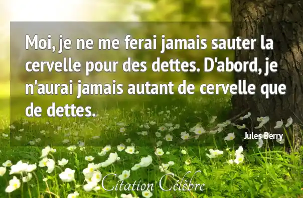 Moi, je ne me ferai jamais sauter la cervelle pour des dettes. D'abord, je n'aurai jamais autant de cervelle que de dettes.