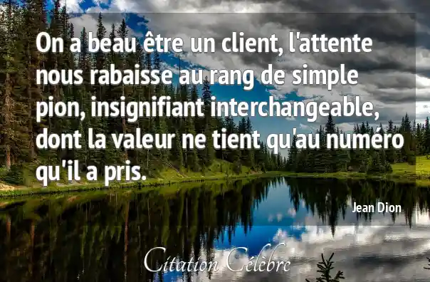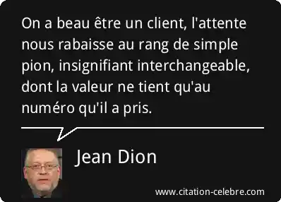 On a beau être un client, l'attente nous rabaisse au rang de simple pion, insignifiant interchangeable, dont la valeur ne tient qu'au numéro qu'il a pris.