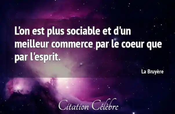 L'on est plus sociable et d'un meilleur commerce par le coeur que par l'esprit.