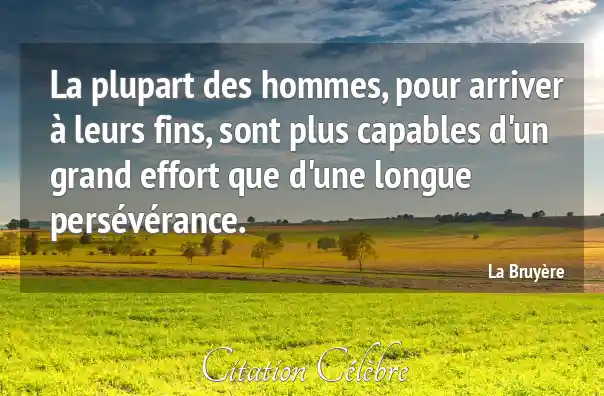 La plupart des hommes, pour arriver à leurs fins, sont plus capables d'un grand effort que d'une longue persévérance.