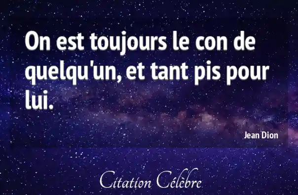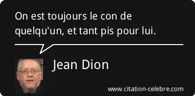 Cette formule, attribuée à Jean Dion, est une expression de relativité du jugement et de défiance face à la critique. Elle signifie que, quelle que soit la personne et ses actions, il y aura toujours quelqu'un d'autre pour la considérer comme sotte, ridicule, ou incompétente (le « con »).