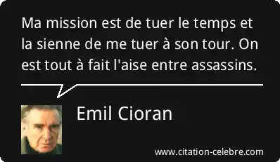 Ma mission est de tuer le temps et la sienne de me tuer à son tour. On est tout à fait l'aise entre assassins.