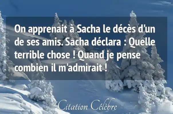 On apprenait à Sacha le décès d'un de ses amis. Sacha déclara : Quelle terrible chose ! Quand je pense combien il m'admirait !