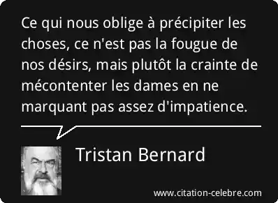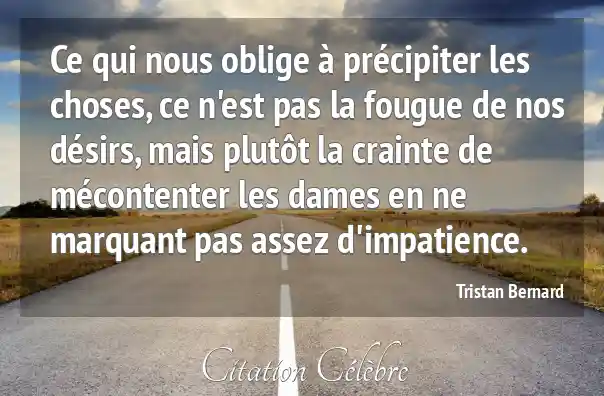 Ce qui nous oblige à précipiter les choses, ce n'est pas la fougue de nos désirs, mais plutôt la crainte de mécontenter les dames en ne marquant pas assez d'impatience.