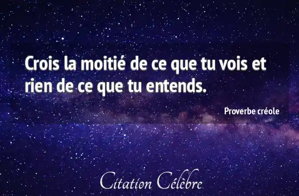 Crois la moitié de ce que tu vois et rien de ce que tu entends.