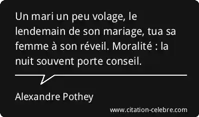 Un mari un peu volage, le lendemain de son mariage, tua sa femme à son réveil. Moralité : la nuit souvent porte conseil.