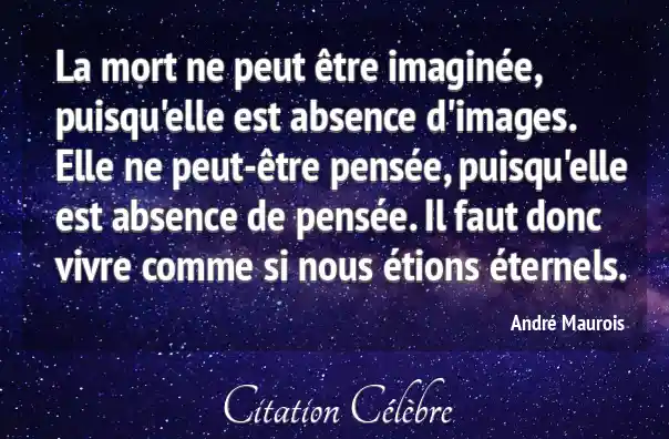 La mort ne peut être imaginée, puisqu'elle est absence d'images. Elle ne peut-être pensée, puisqu'elle est absence de pensée. Il faut donc vivre comme si nous étions éternels.