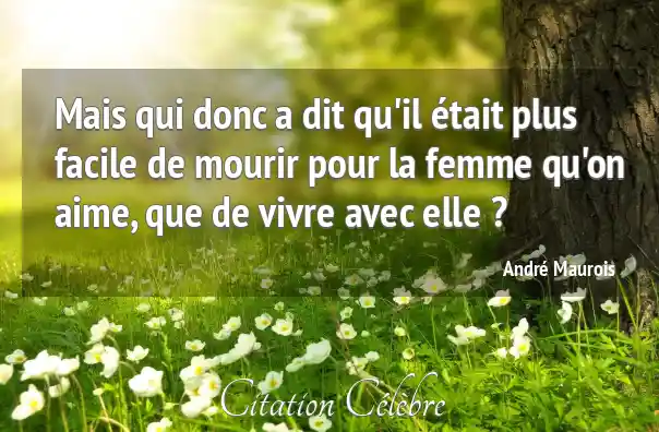 Mais qui donc a dit qu'il était plus facile de mourir pour la femme qu'on aime, que de vivre avec elle ?