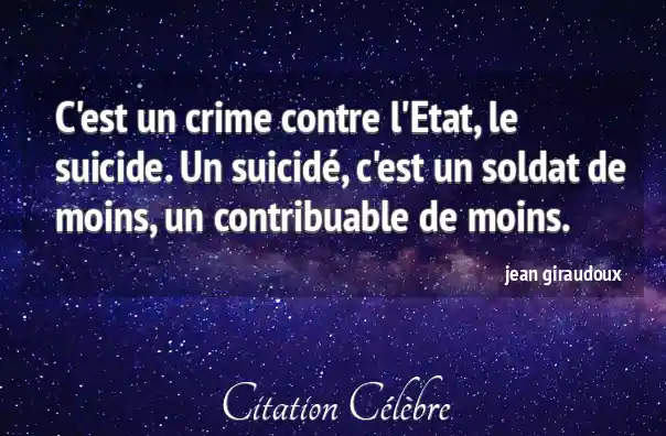 C'est un crime contre l'Etat, le suicide. Un suicidé, c'est un soldat de moins, un contribuable de moins.