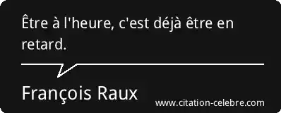 Bien que la formulation moderne soit attribuée à François Raux, le concept selon lequel être simplement à l'heure est insuffisant est une idée partagée dans les milieux militaires et de la performance. Souvent, la formule est reprise et parfois attribuée à d'autres figures pour souligner la nécessité de l'anticipation. Dans ce cas précis, elle est fermement associée à François Raux.