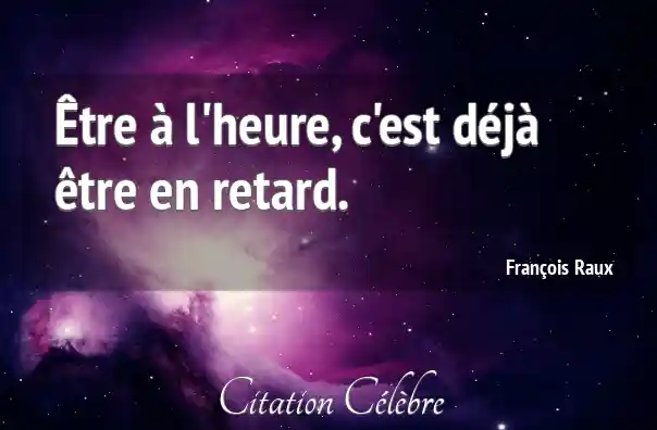 La citation « Être à l'heure, c'est déjà être en retard. » exprime l'idée que la simple ponctualité, c'est-à -dire arriver exactement à l'heure convenue, n'est pas suffisante. Elle suggère qu'il faut viser une anticipation, un temps d'avance, pour être véritablement prêt et efficace. Être « à l'heure » est perçu comme le strict minimum, ce qui ne laisse aucune marge pour l'imprévu ou la préparation. Par conséquent, il faut arriver en avance pour se donner le temps nécessaire d'être réellement « prêt ».