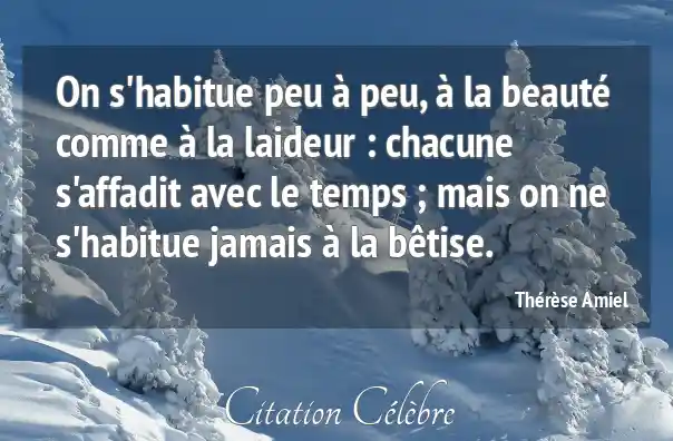 On s'habitue peu à peu, à la beauté comme à la laideur : chacune s'affadit avec le temps ; mais on ne s'habitue jamais à la bêtise.