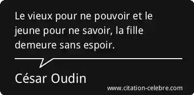 Le vieux pour ne pouvoir et le jeune pour ne savoir, la fille demeure sans espoir.
