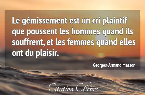 Le gémissement est un cri plaintif que poussent les hommes quand ils souffrent, et les femmes quand elles ont du plaisir.