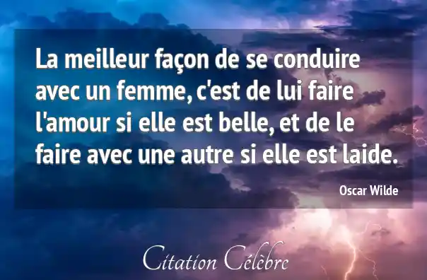 La meilleur façon de se conduire avec un femme, c'est de lui faire l'amour si elle est belle, et de le faire avec une autre si elle est laide.
