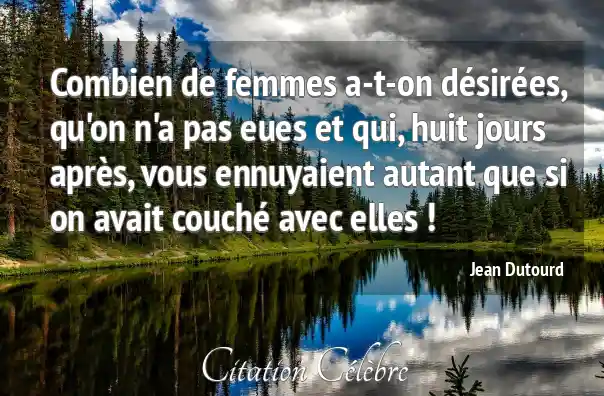 Combien de femmes a-t-on désirées, qu'on n'a pas eues et qui, huit jours après, vous ennuyaient autant que si on avait couché avec elles !